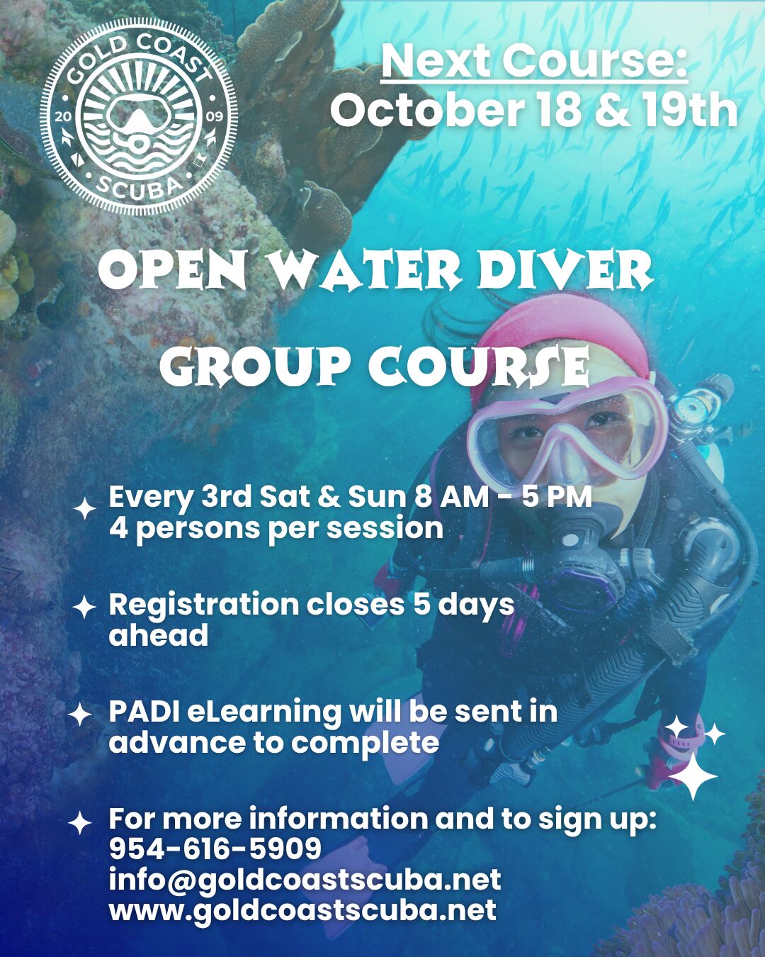 PADI Open Water Diver Group Course October 18-19, 2025